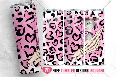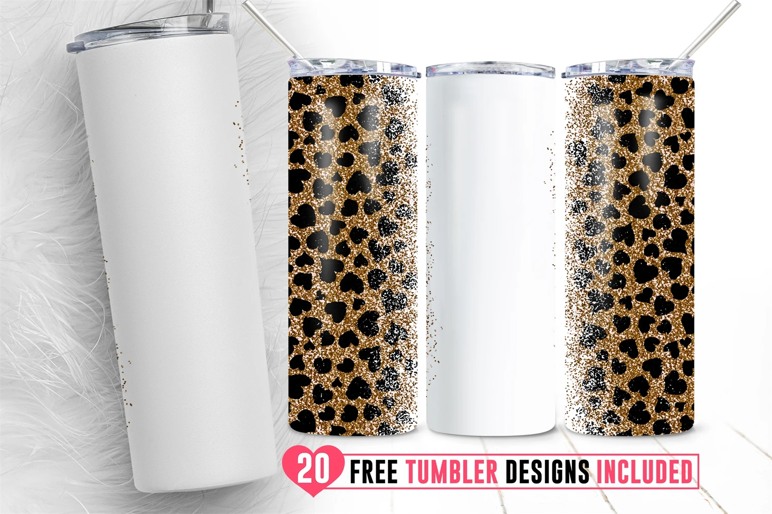 20oz Valentines Day Skinny Tumbler Sublimation Png, Leopard