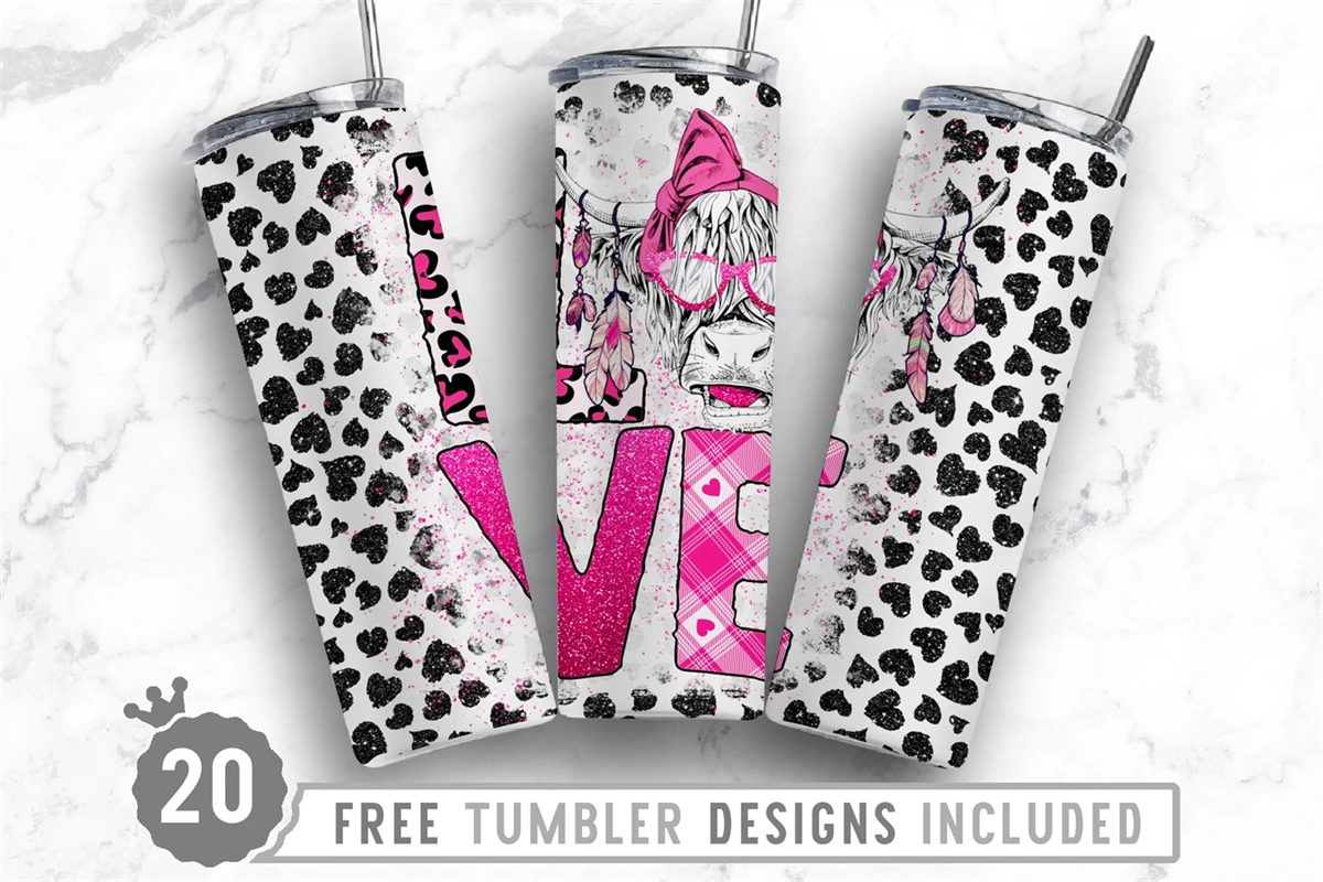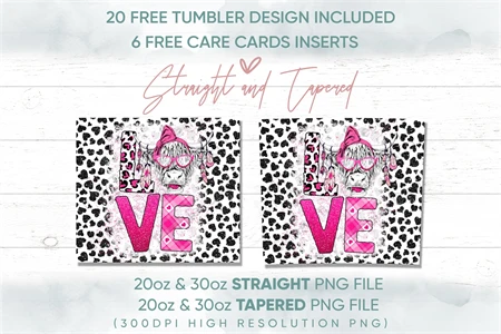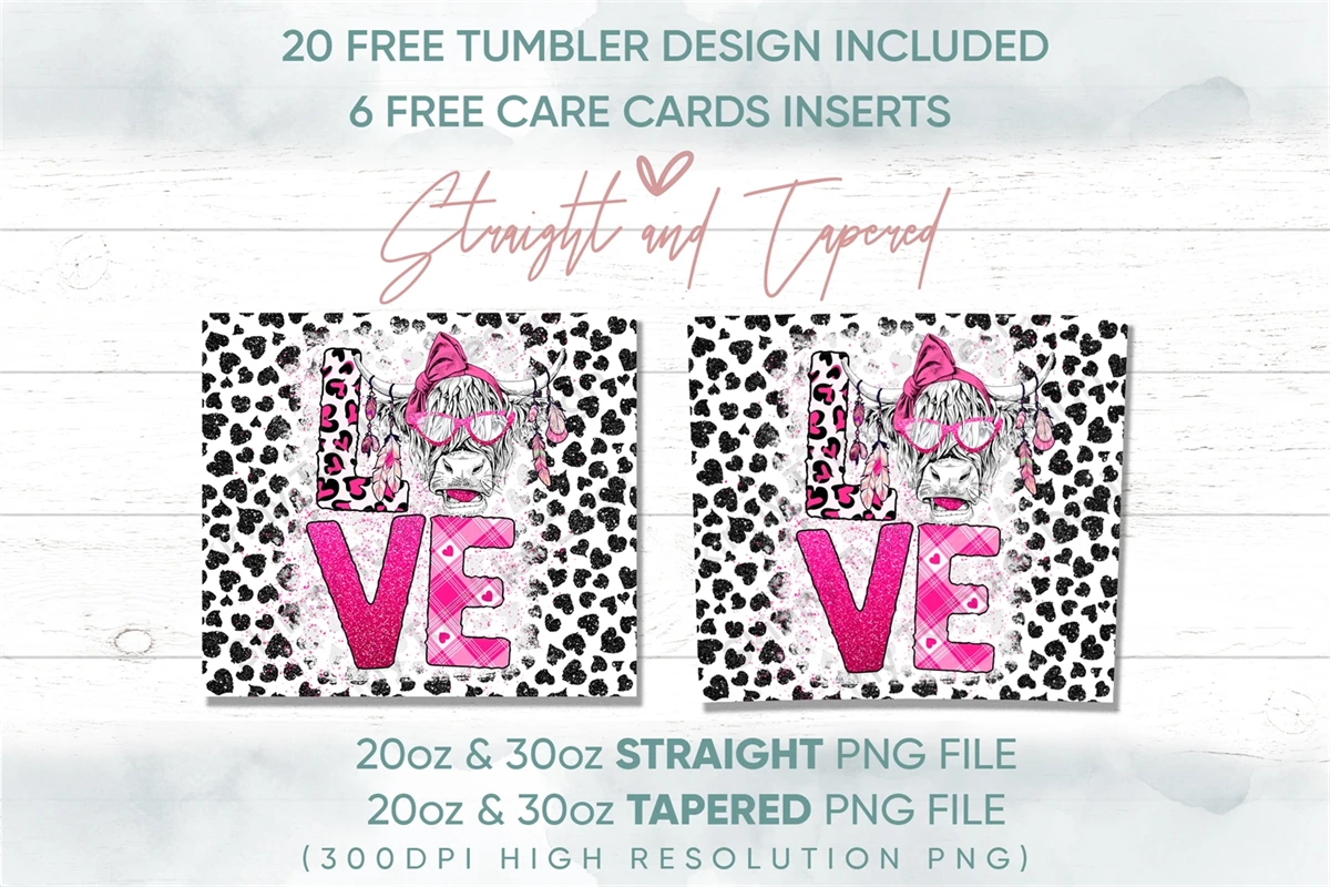 20oz Valentines Day Skinny Tumbler Sublimation Png, Love Cow