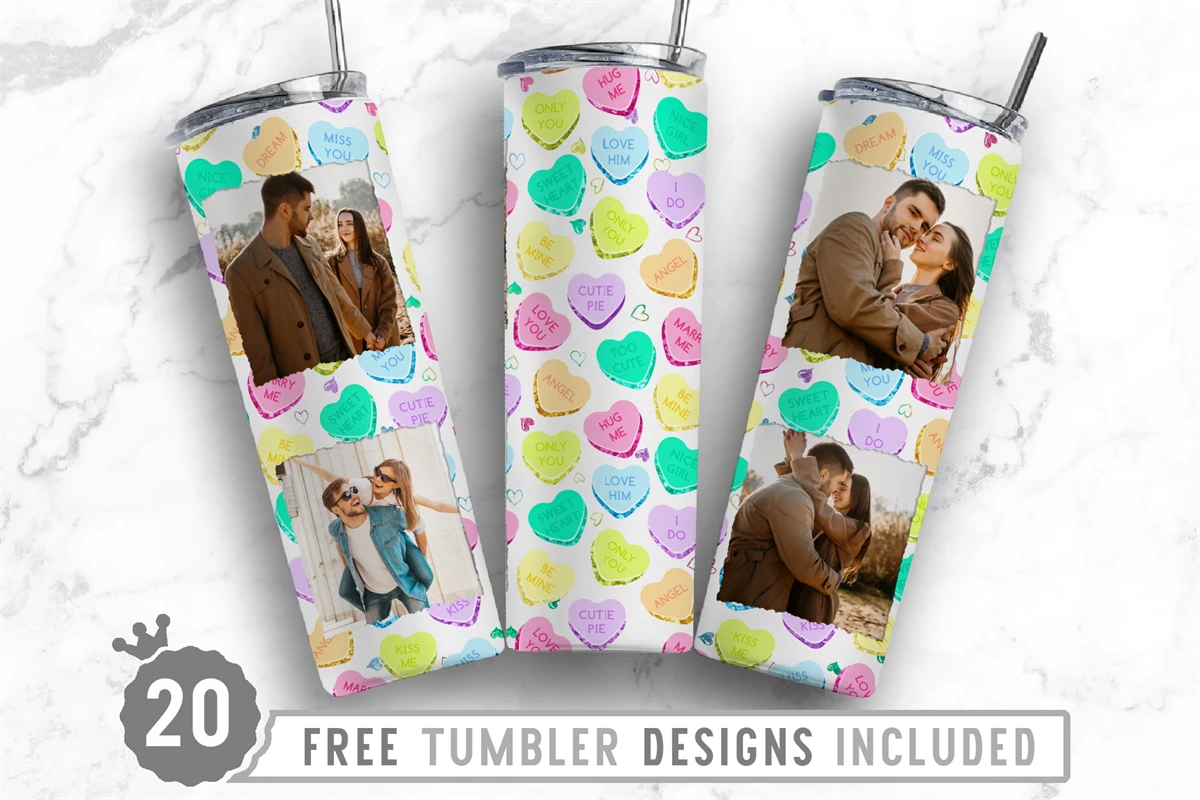 20oz Valentines Photo Frame Skinny Tumbler Sublimation Png
