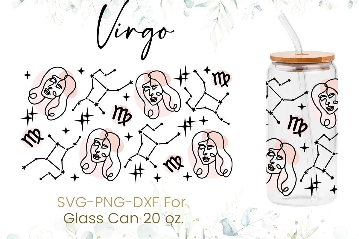 20oz Virgo Libbey Glass Can Svg, Astrology Women, Twins Star