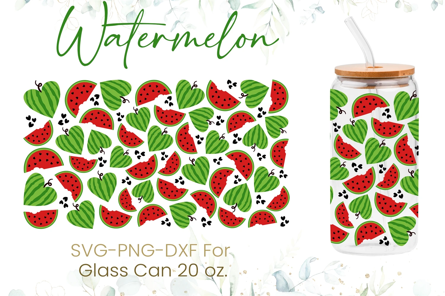 20oz Watermelon Libbey Glass Can Svg, Watermelon Glass Can