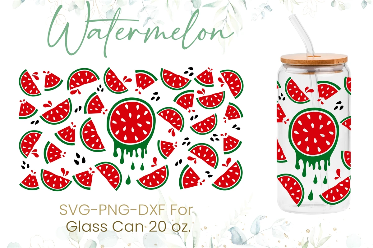 20oz Watermelon Libbey Glass Can Svg, Watermelon Glass Can