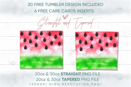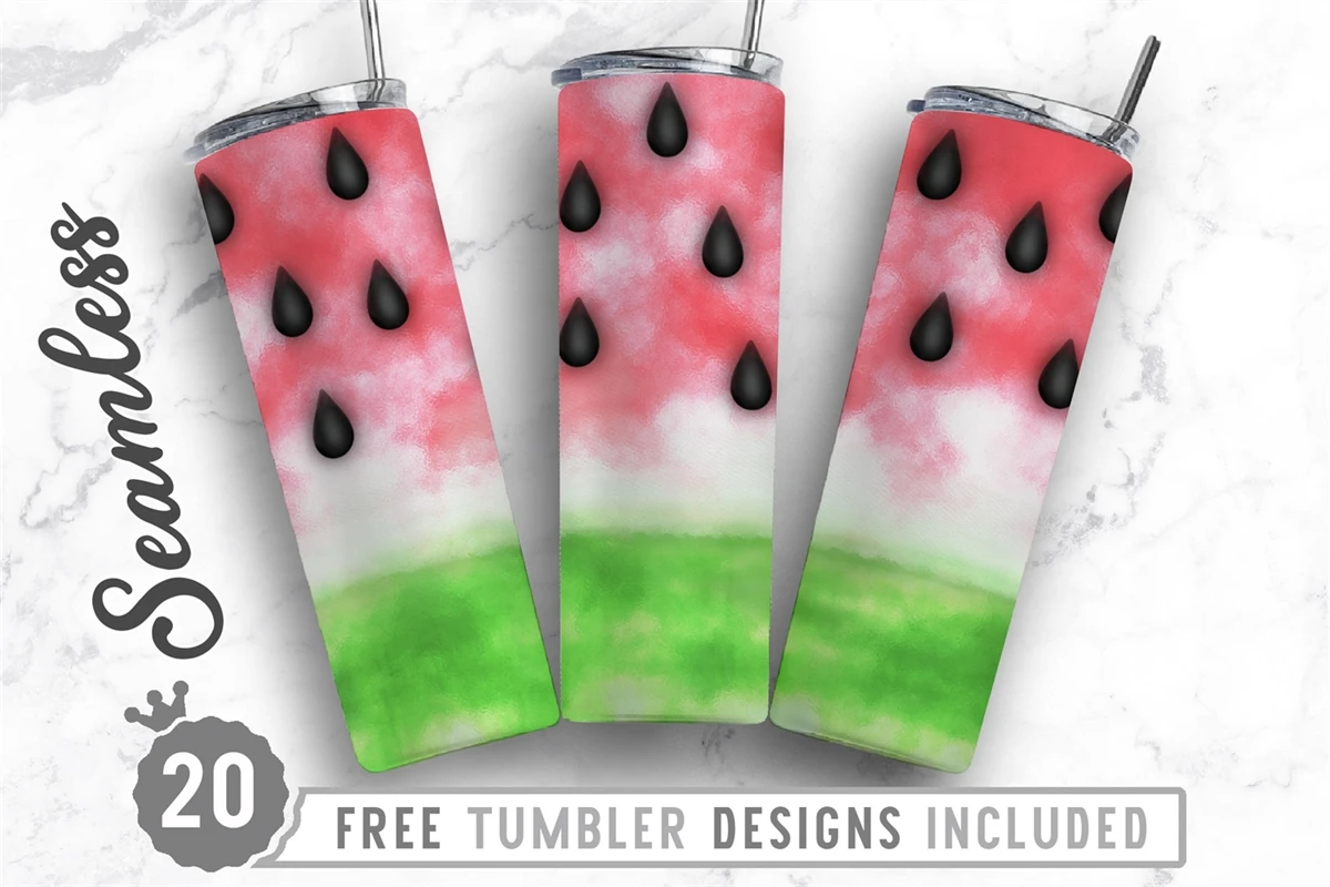 20oz Watermelon Skinny Tumbler Sublimation, Straight Tapered