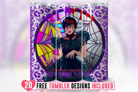 20oz Wednesday Skinny Tumbler Wrap Png, Spider Web,Halloween