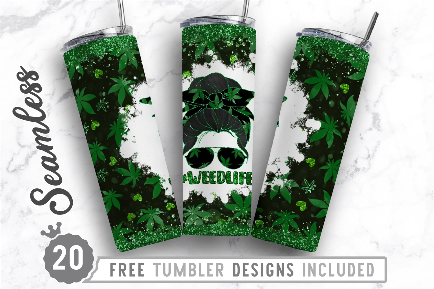 20oz Weed Life Skinny Tumbler Sublimation, Straight Tapered