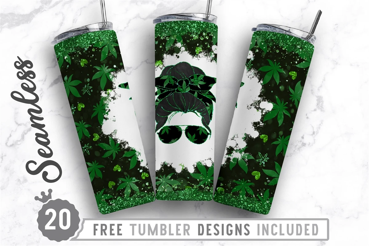 20oz Weed Skinny Tumbler Sublimation Png, Straight Tapered