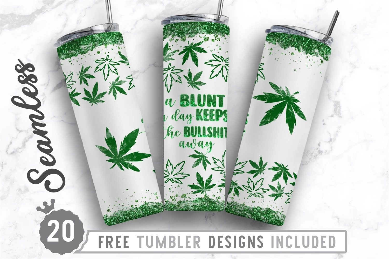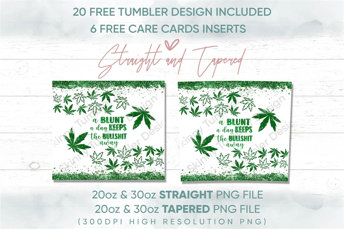 20oz Weed Skinny Tumbler Sublimation Png, Straight Tapered