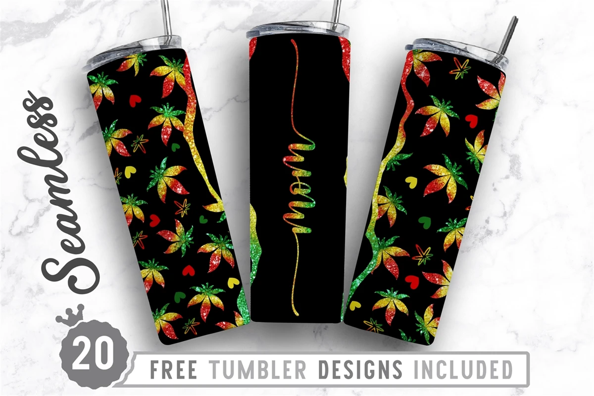20oz Weed Skinny Tumbler Sublimation Png, Straight Tapered