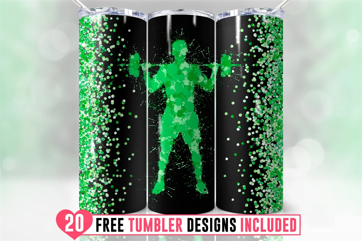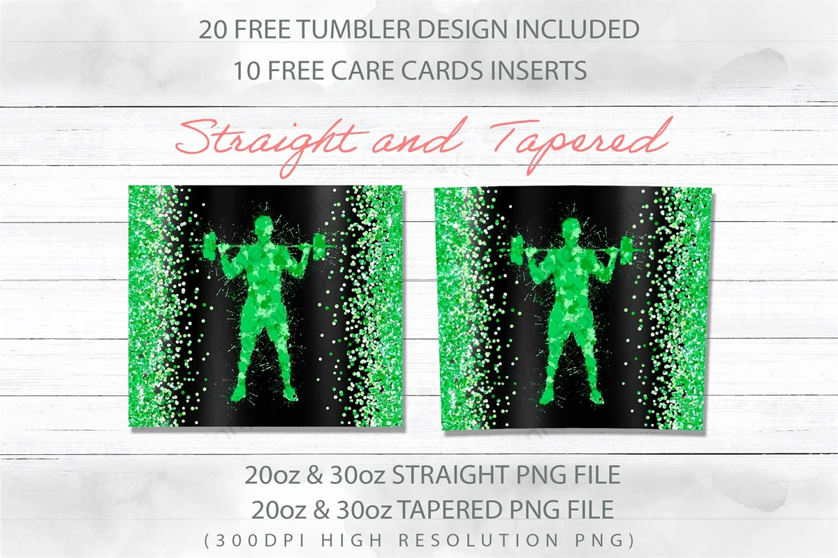 20oz Weight Lifting Glitter Skinny Tumbler Wrap Png, Gym