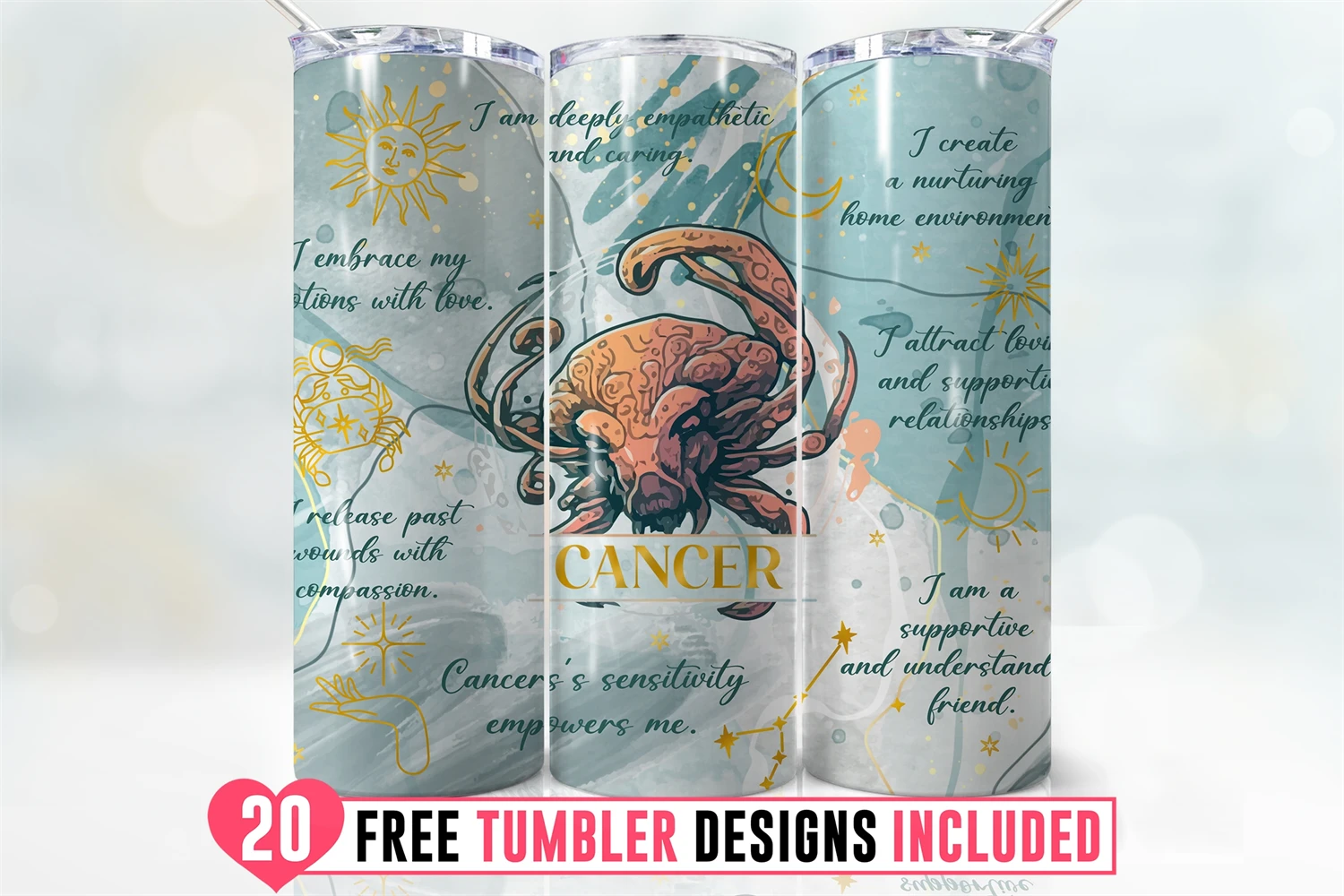 20oz Zodiac Signs Cancer Skinny Tumbler, Cancer Affirmation