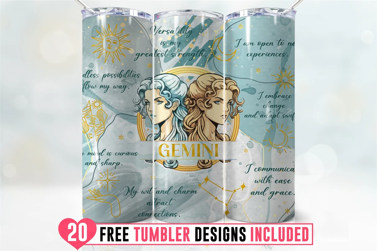 20oz Zodiac Signs Gemini Skinny Tumbler Wrap Png, Gemini