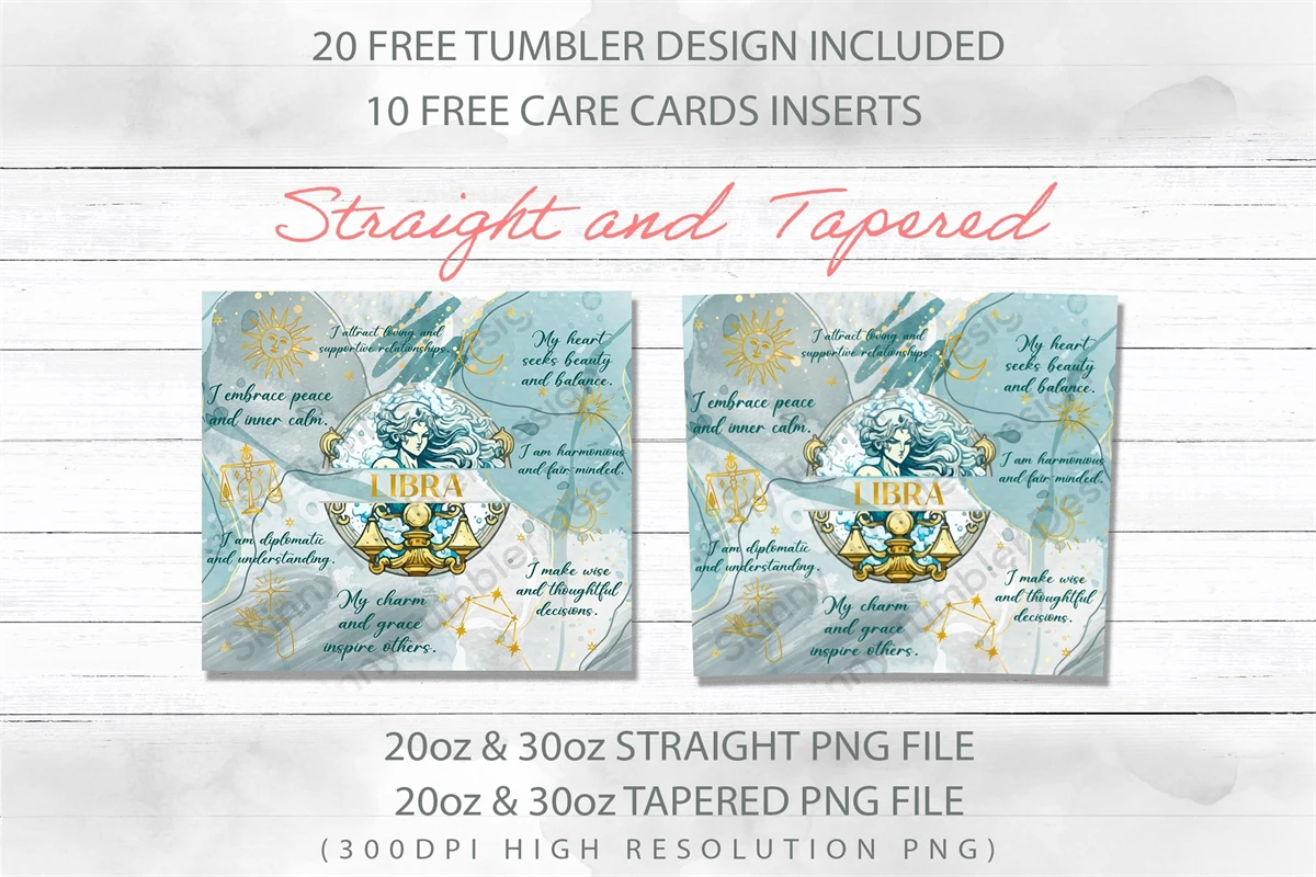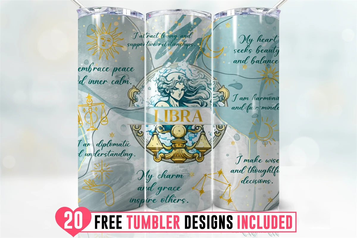20oz Zodiac Signs Libra Skinny Tumbler Wrap Png, Astrology