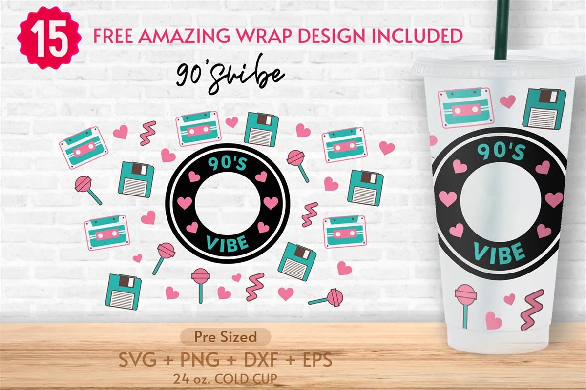 24oz 90s Vibe Starbucks Cold Cup Svg,Take Me Back To The 90s