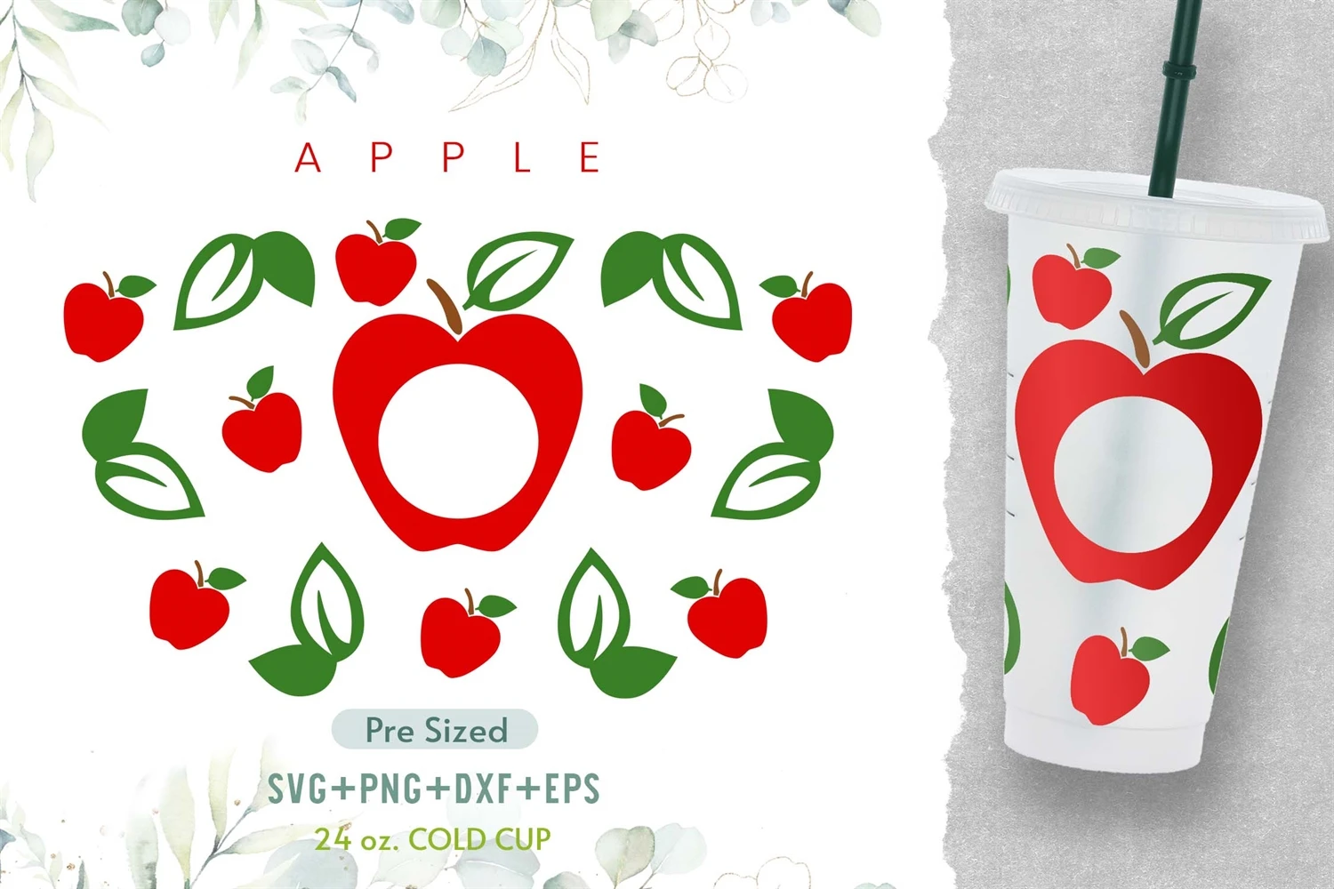 24oz Apple Starbucks Cold Cup Svg, Teacher Svg, Flower Svg