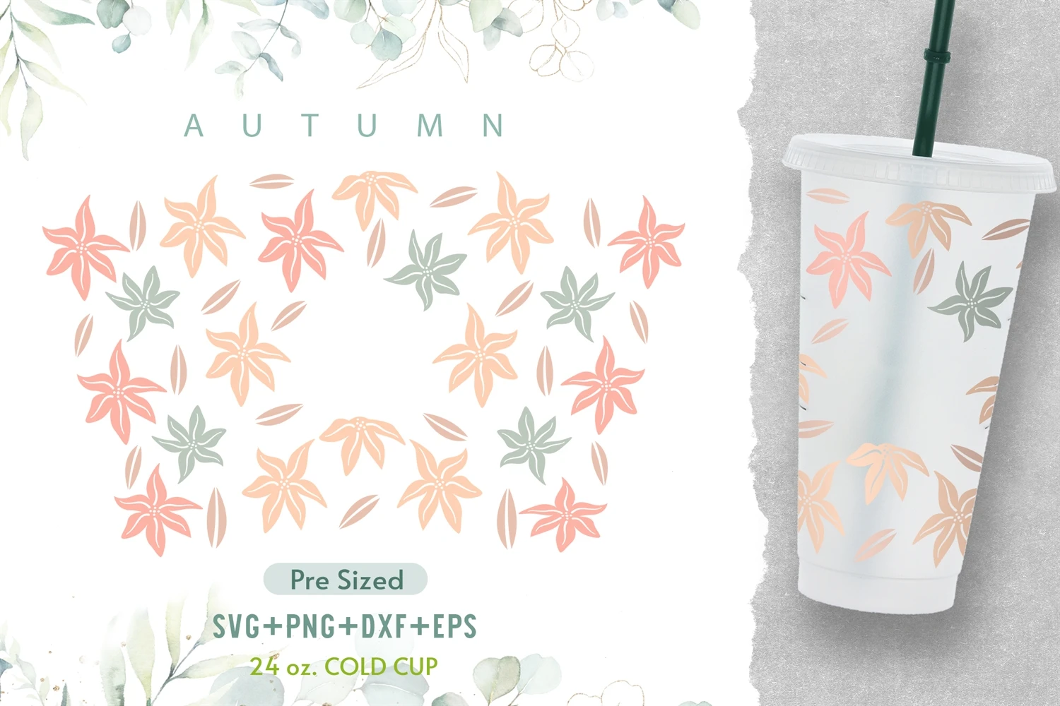 24oz Autumn Flowers Starbucks Cold Cup Svg,Autumn Svg,Flower