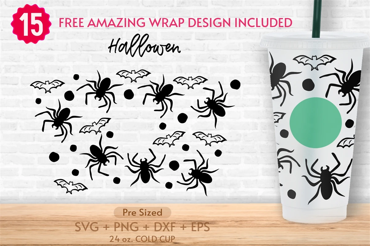 24oz Bat & Spider Coffee Cold Cup Svg, Spooky, Halloween Svg