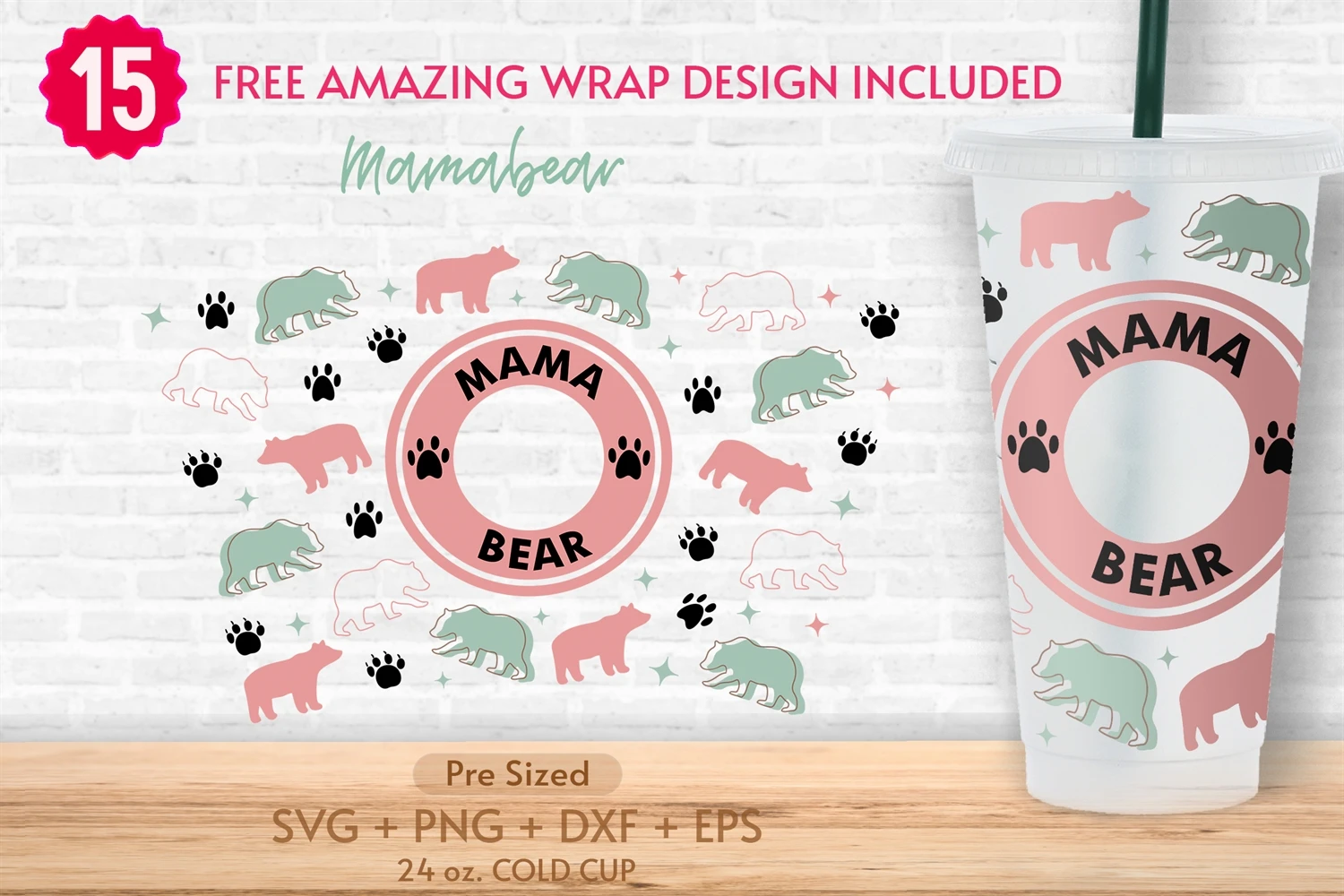 24oz Bear Mama Starbucks Cold Cup Svg, Mom Life Svg, Mom Svg