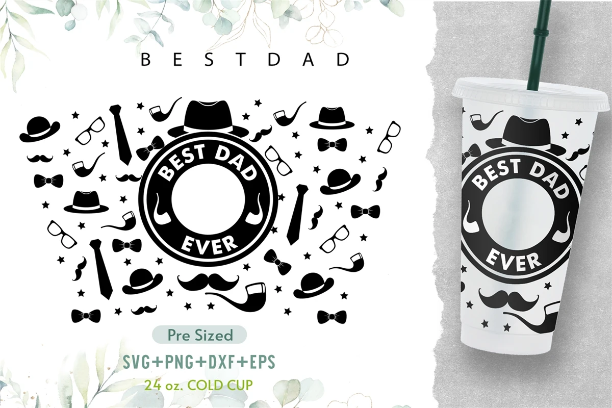 24oz Best Dad Ever Starbucks Cold Cup Svg, Venti Full Wrap
