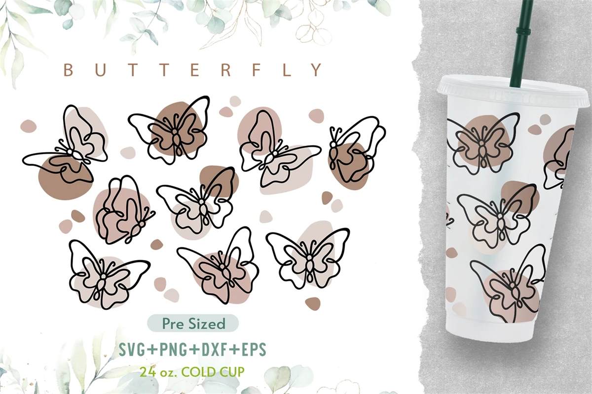 24oz Butterfly Line Art No Hole Starbucks Svg, Venti Cup Svg