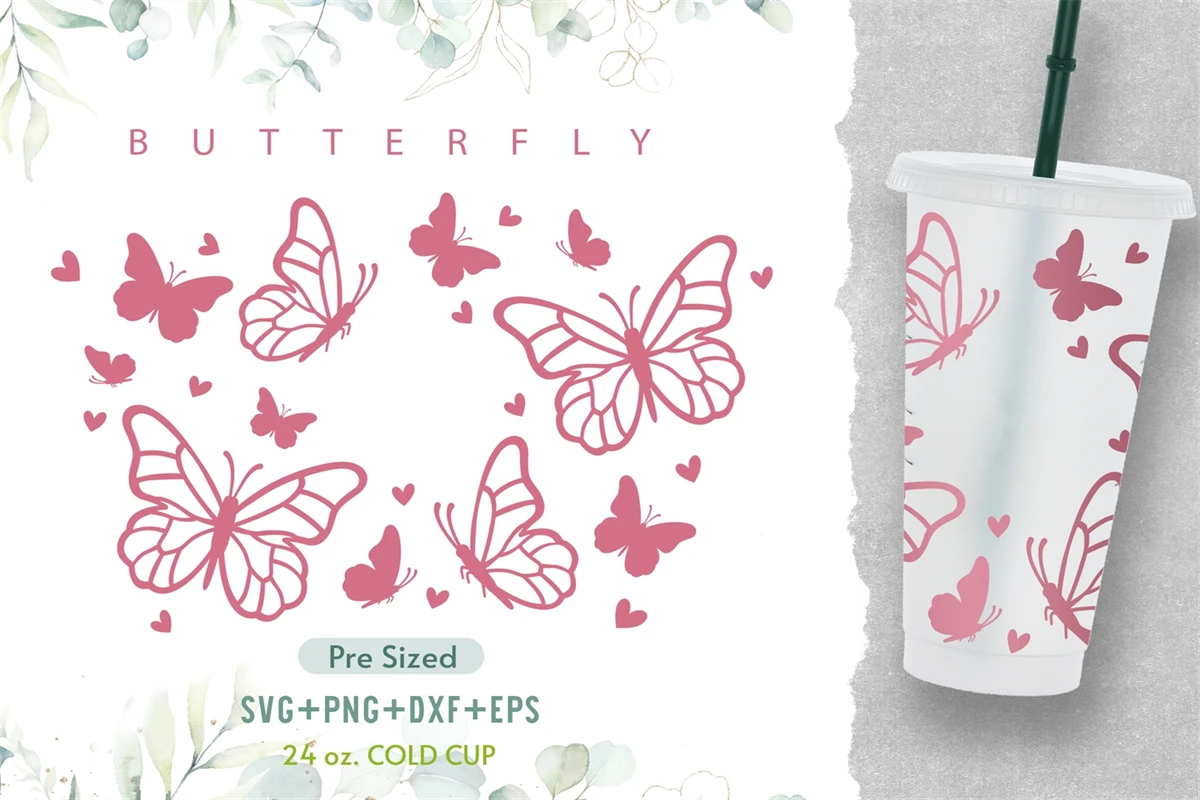 24oz Butterfly Starbucks Cold Cup Svg, Venti Full Wrap Svg