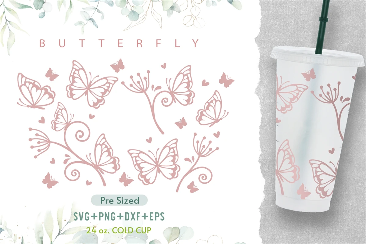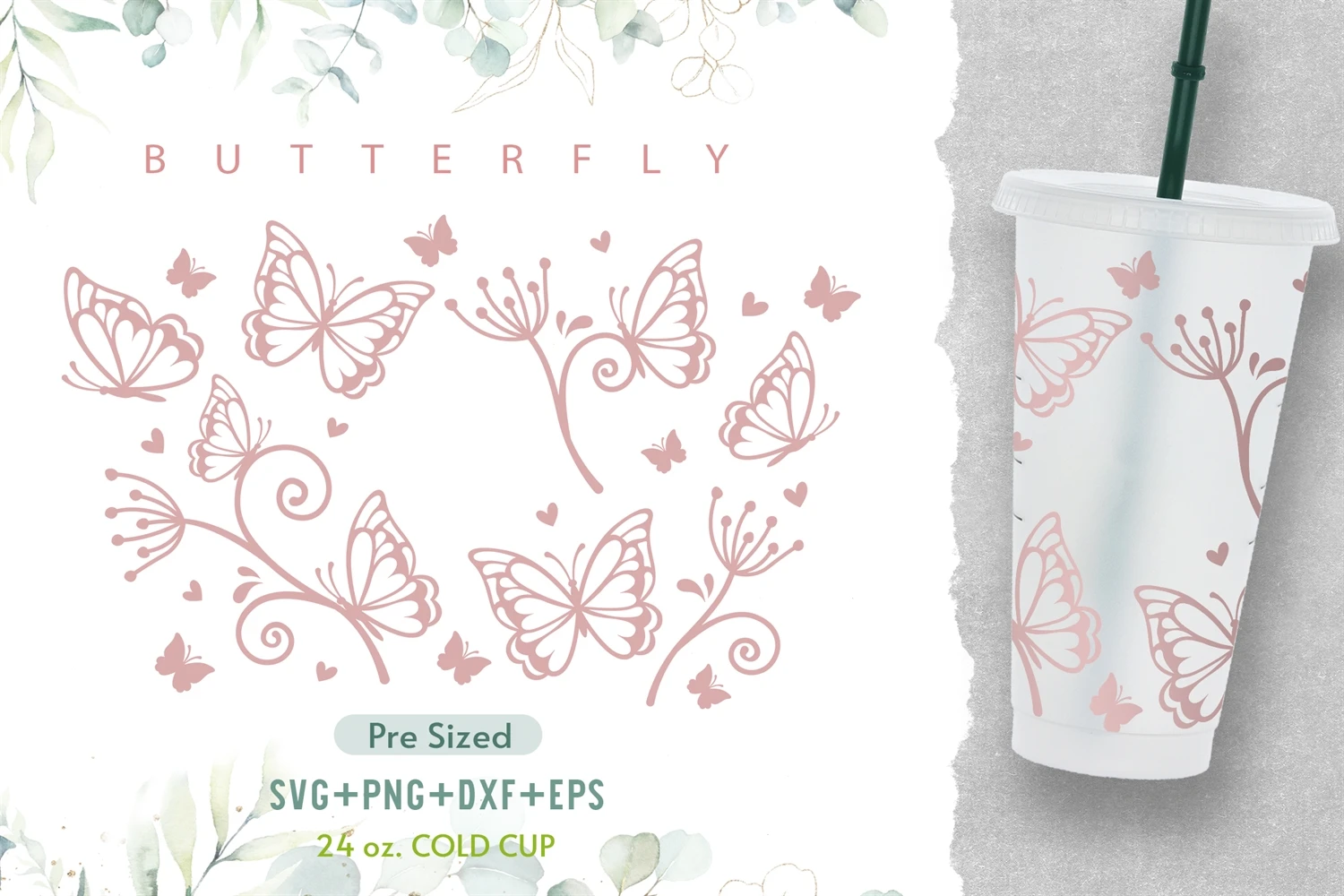 24oz Butterfly Starbucks Cold Cup Svg, Venti Full Wrap Svg