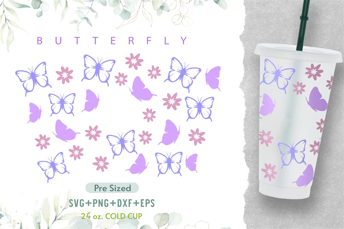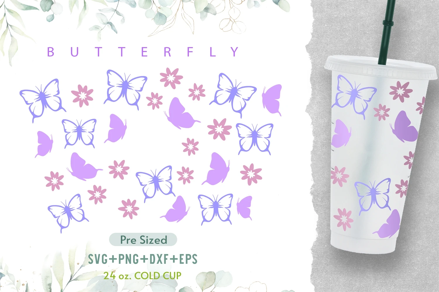 24oz Butterfly Starbucks Cold Cup Svg, Venti Full Wrap Svg