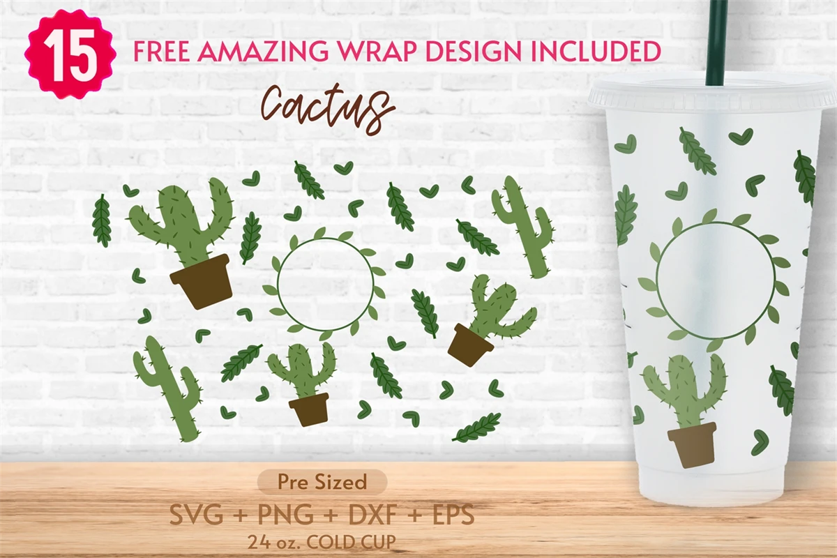 24oz Cactus No Hole Starbucks Cold Cup Svg,Cuctus Lovers Svg