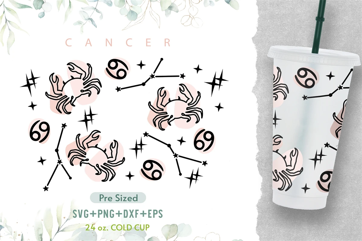 24oz Cancer Starbucks Cold Cup Svg, Twins Zodiac Star Sign