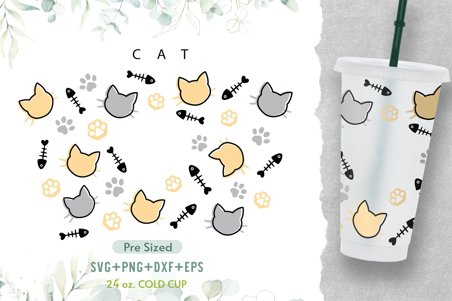 24oz Cat Pattern Starbucks Cold Cup Svg, Venti Cold Cup Svg