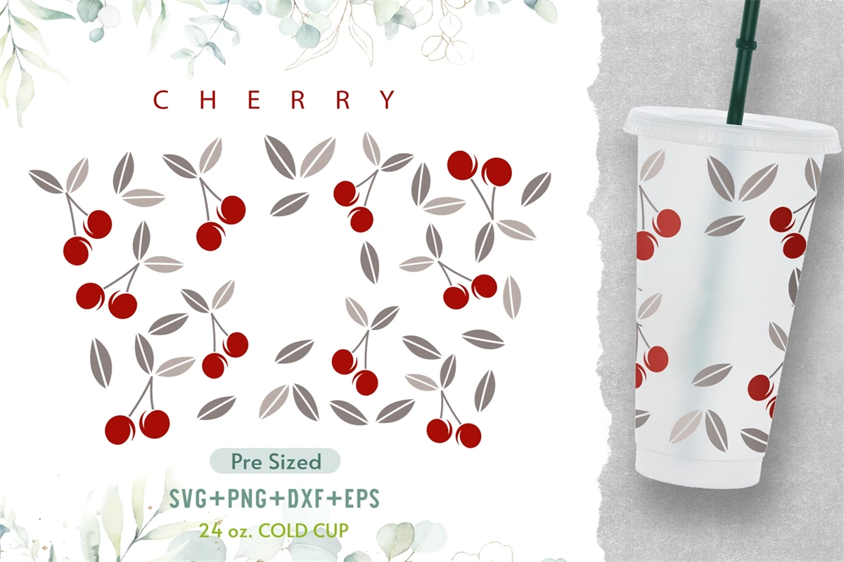 24oz Cherry Starbucks Cold Cup Svg,Flower Venti Cold Cup Svg