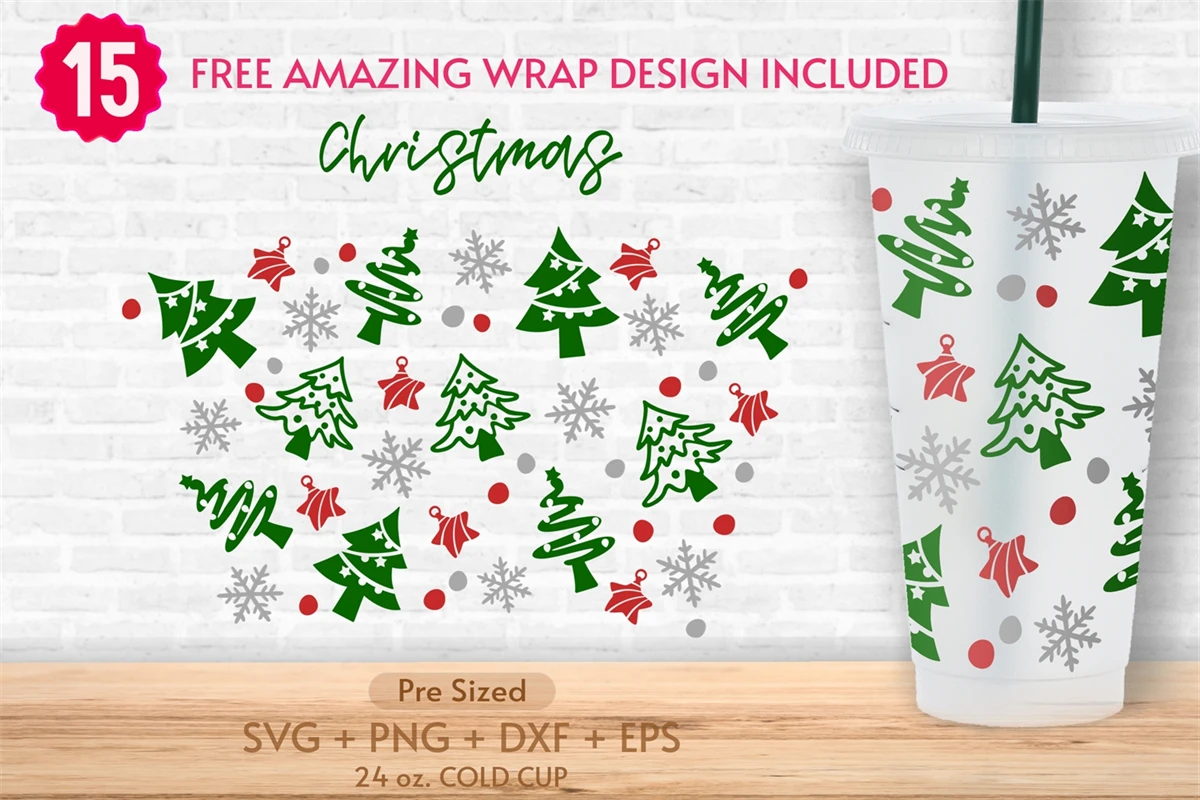 24oz Christmas No Hole Starbucks Cold Cup Svg, Xmas Tree Svg