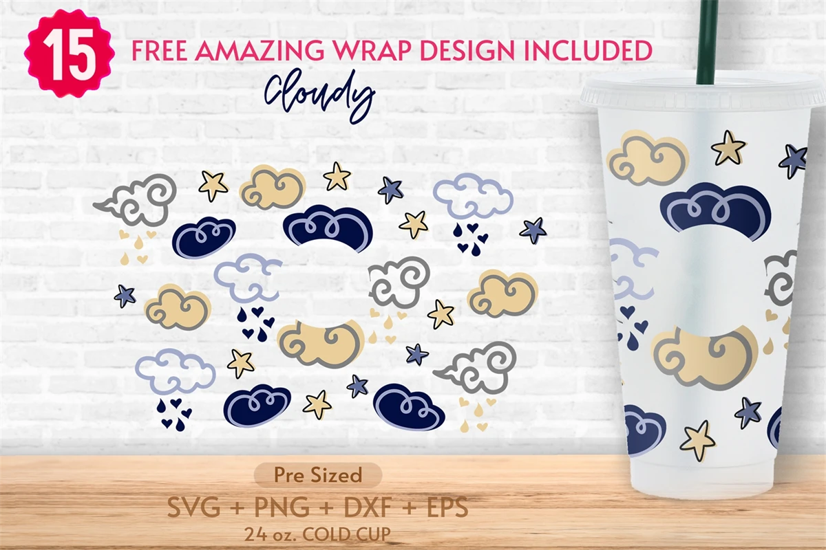 24oz Cloudy Coffee Cold Cup Svg, Venti Full Wrap Svg, Summer