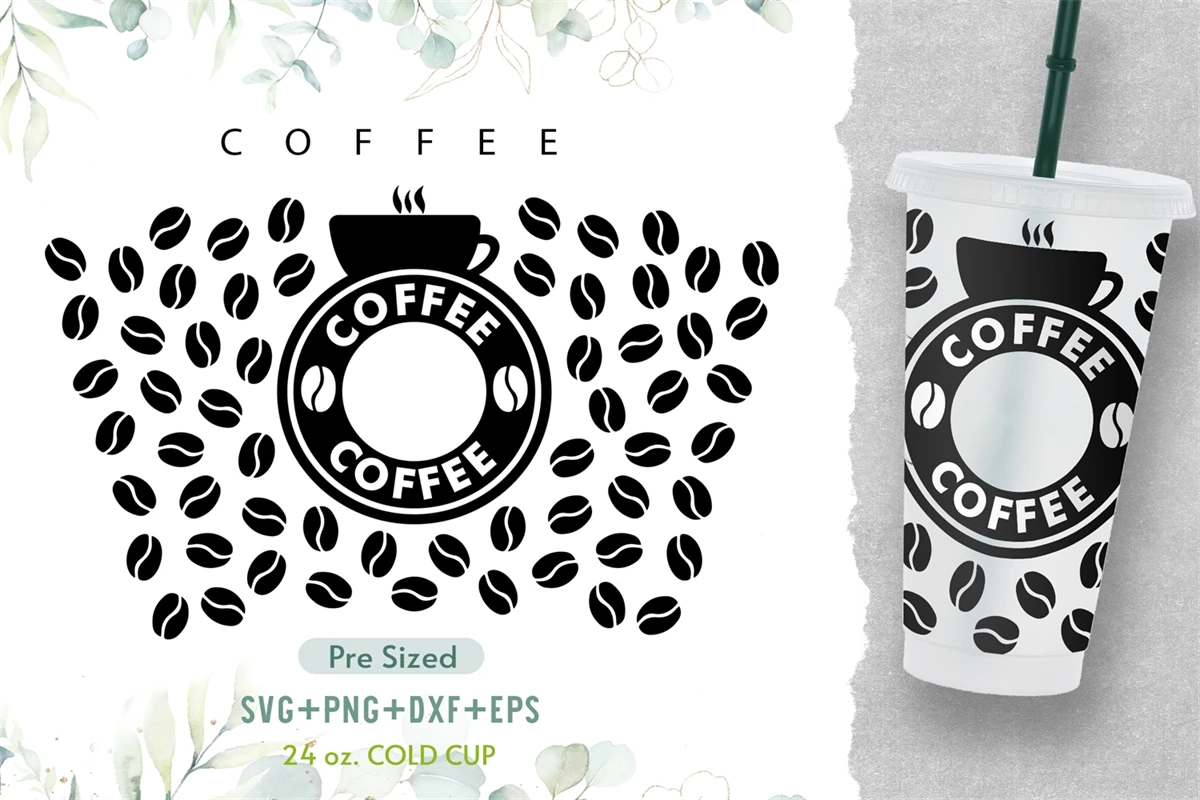 24oz Coffee Beans Starbucks Cold Cup Svg,Venti Full Wrap Svg