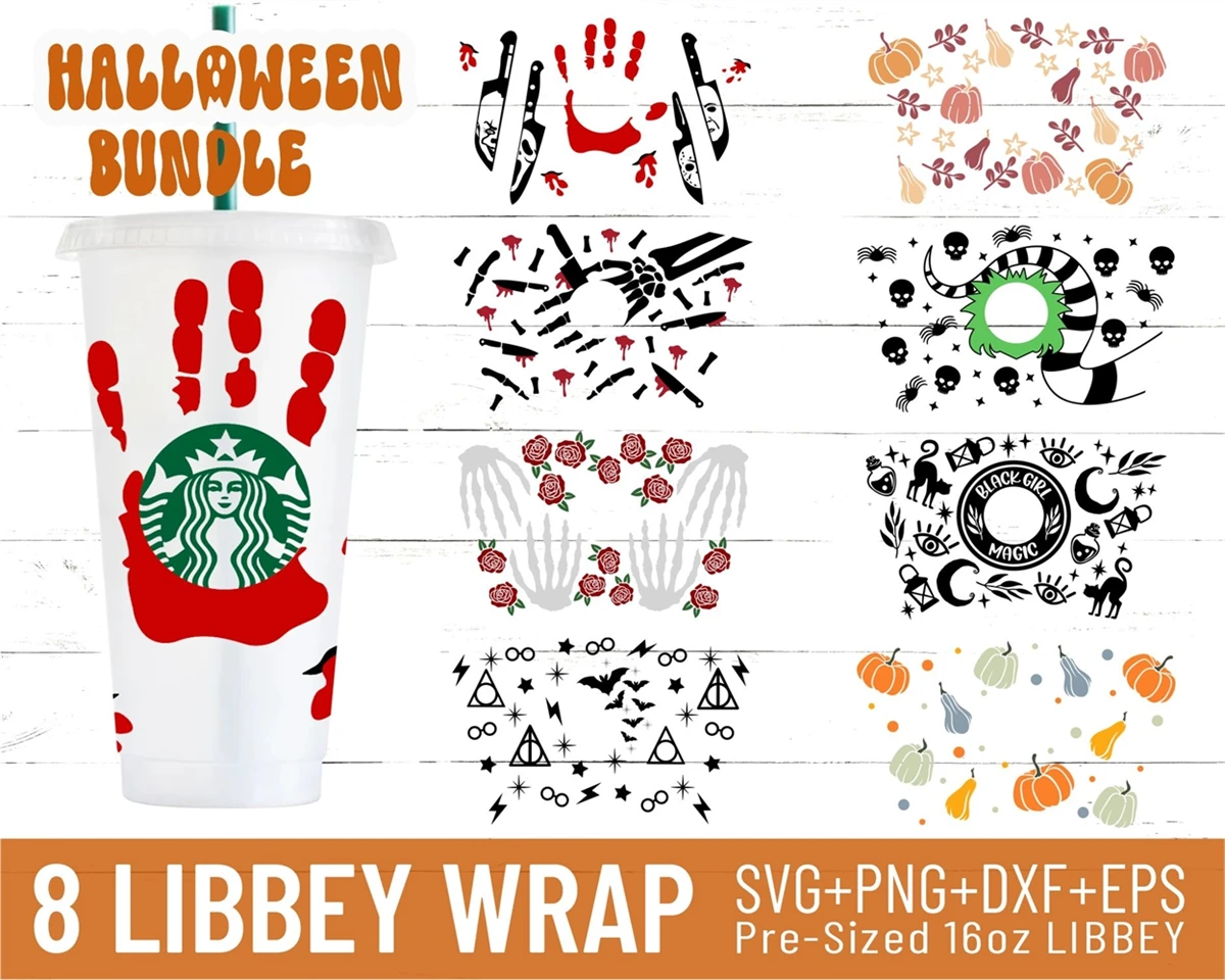 24oz Coffee Cold Cup Svg Bundle,Blood Hand,Magic Wizard, Cat