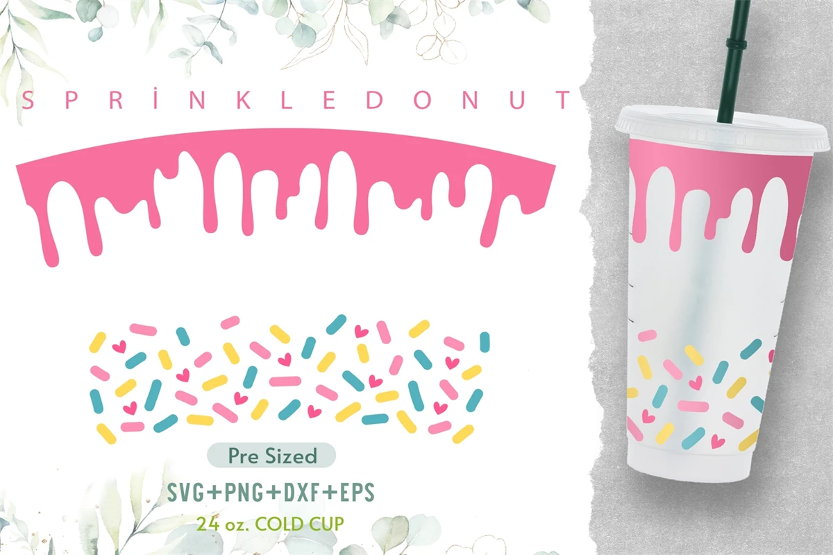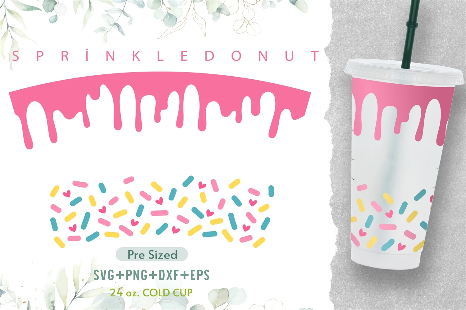 24oz Donut Drip Starbucks Cold Cup Svg, Venti Full Wrap Svg