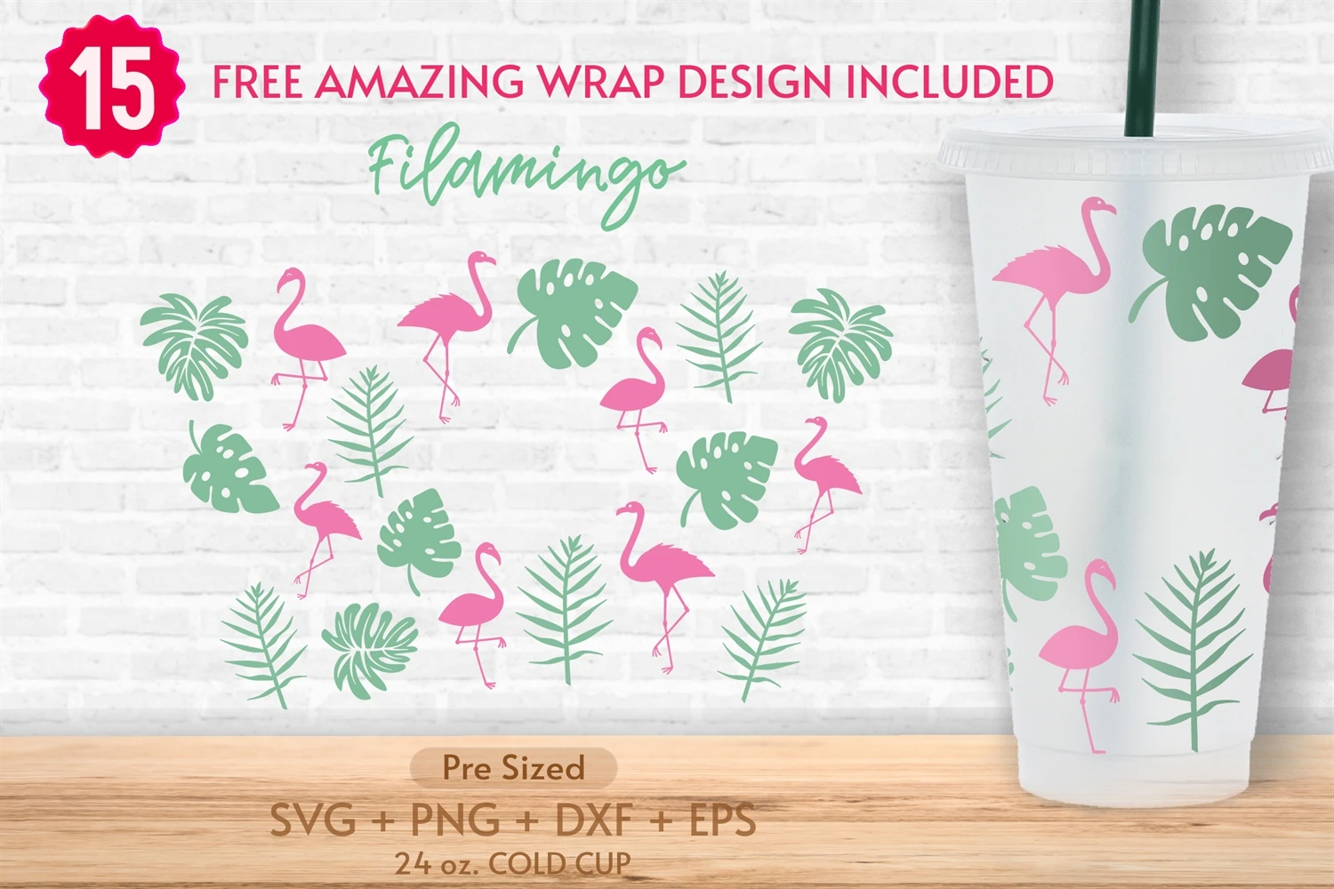 24oz Flamingo Monstera Starbucks Cold Cup Svg, Animals Svg