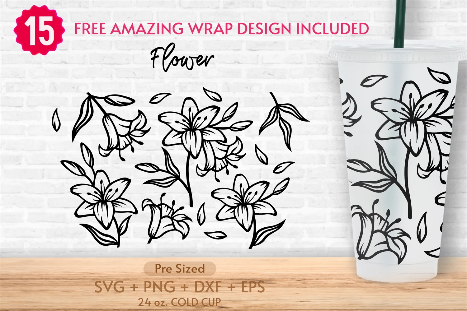 24oz Flower No Hole Starbucks Cold Cup Svg,Venti Cold Cup