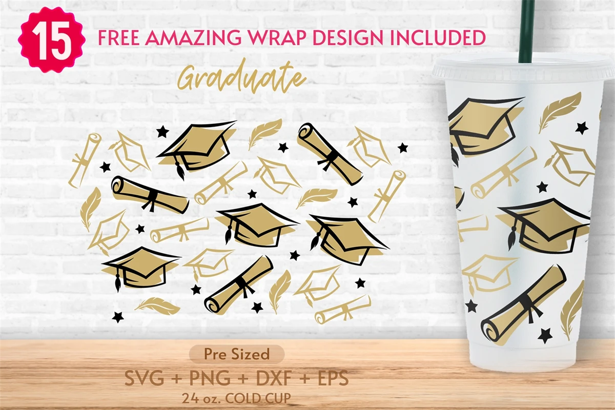 24oz Graduation Cap No Hole Starbucks Cold Cup Svg