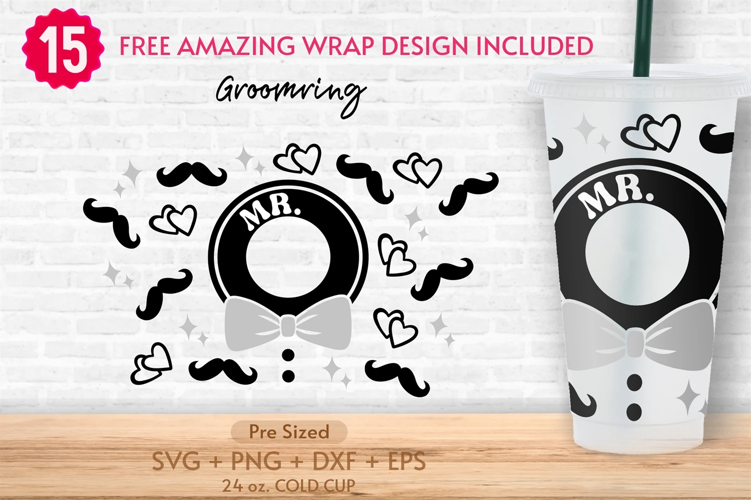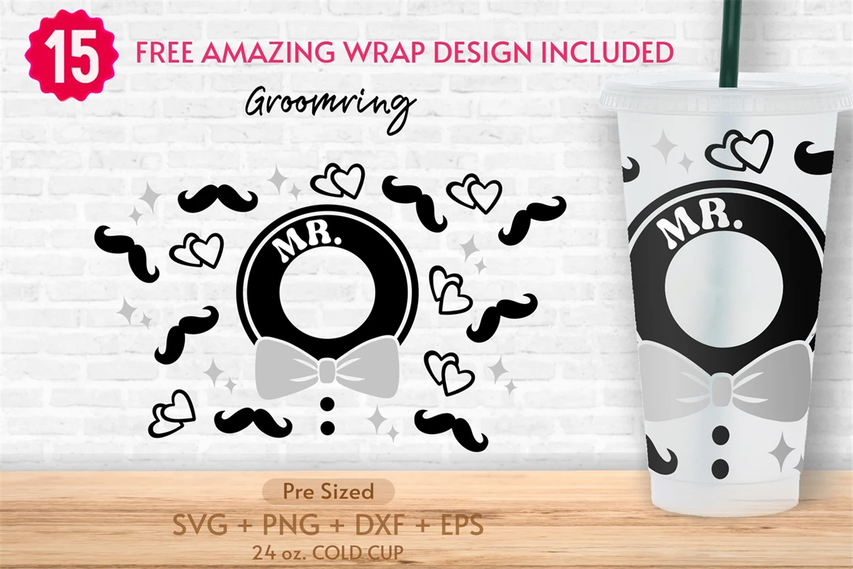 24oz Groom Starbucks Cold Cup Svg, Venti Full Wrap Svg, Ring