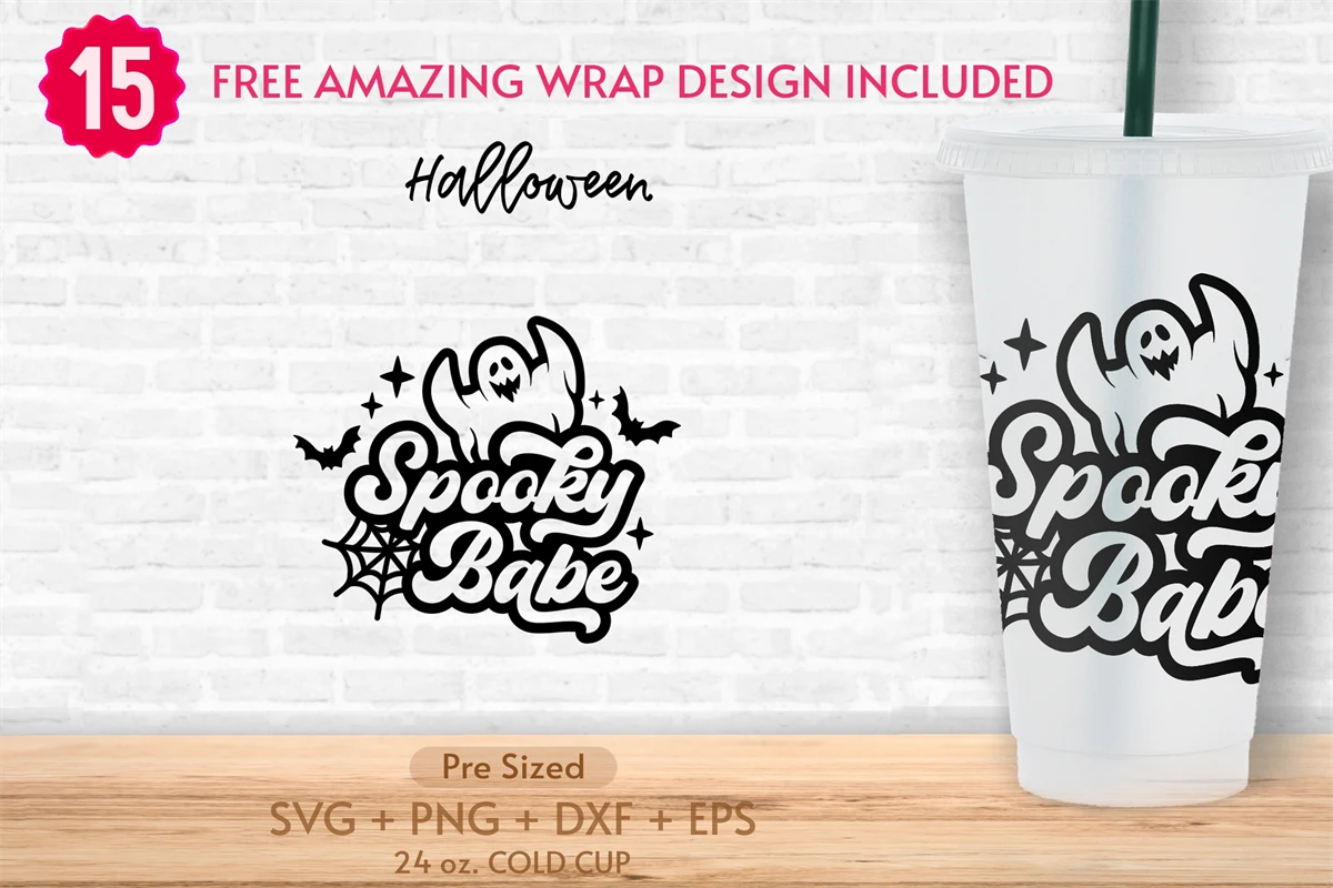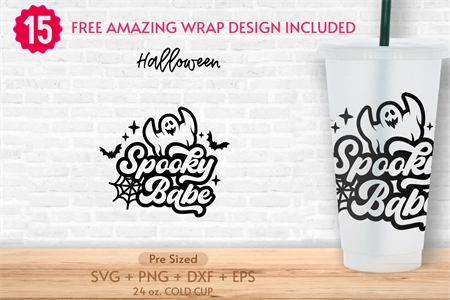 24oz Halloween No Hole Cold Cup Svg,Spooky Babe,Fall Seasson