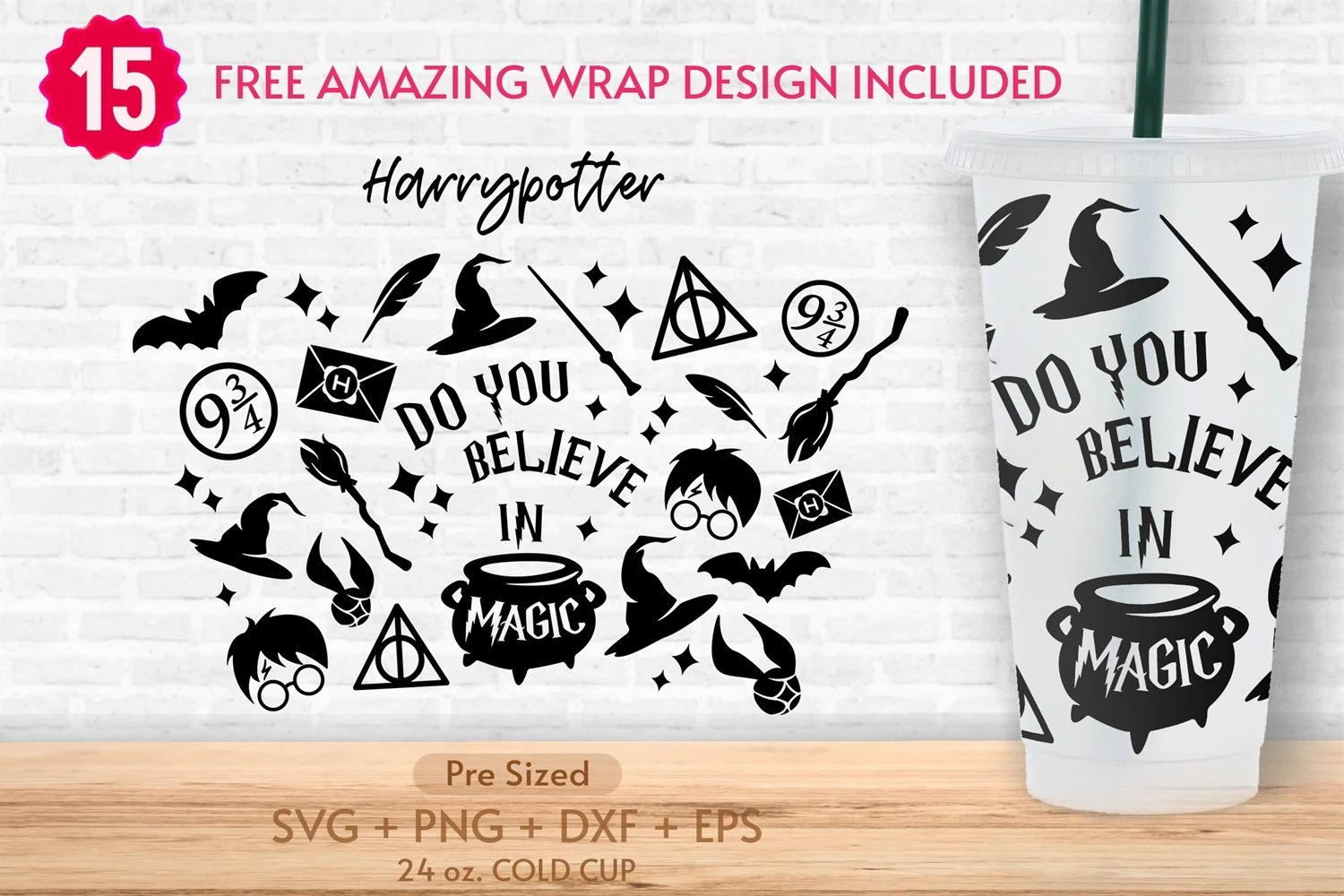 24oz Harry Potter No Hole Starbucks Cold Cup Svg,Magic Wizar