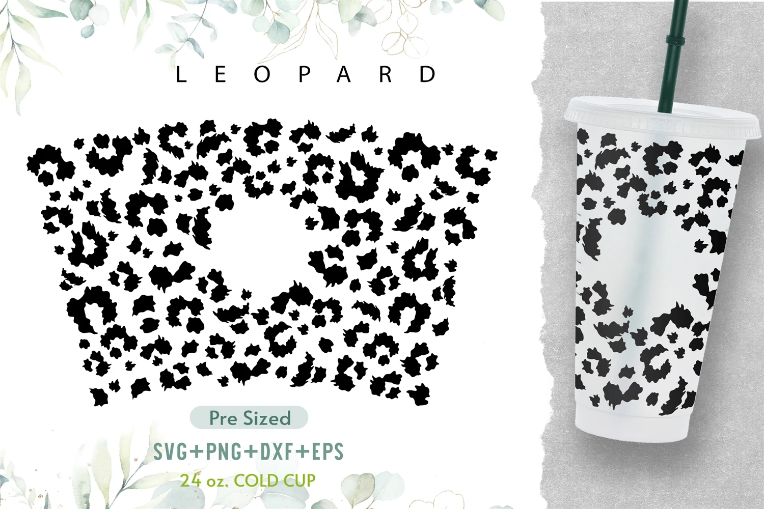 24oz Leopard Heart Starbucks Cold Cup Svg, Venti Full Wrap