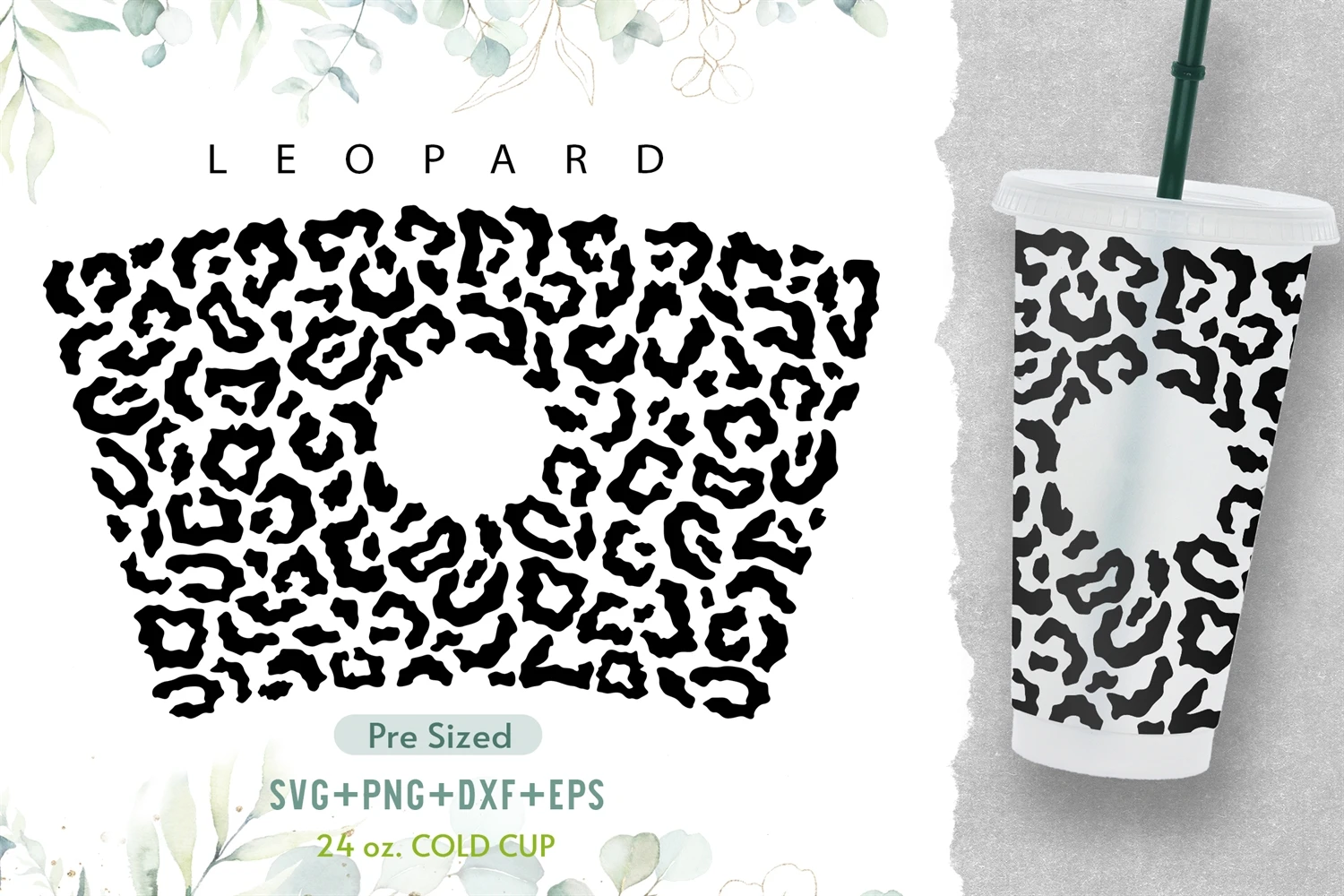 24oz Leopard Heart Starbucks Cold Cup Svg, Venti Full Wrap