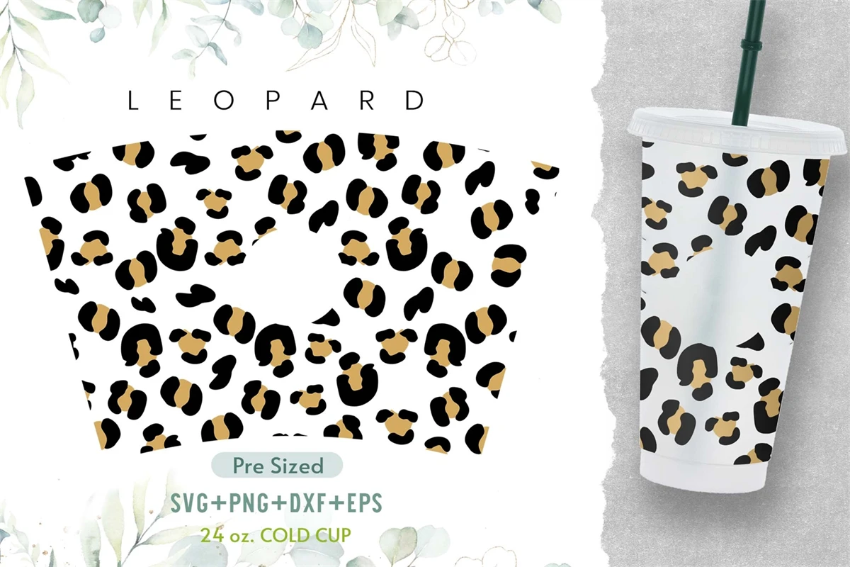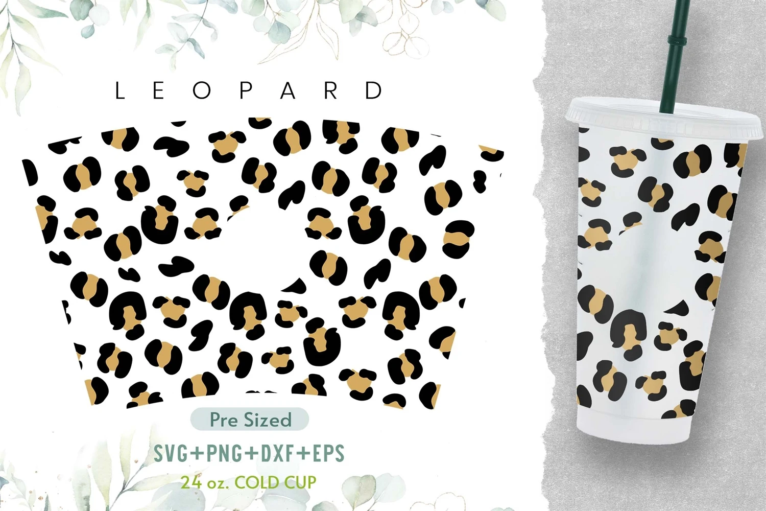 24oz Leopard Starbucks Cold Cup Svg, Leopard Pattern Cup Svg