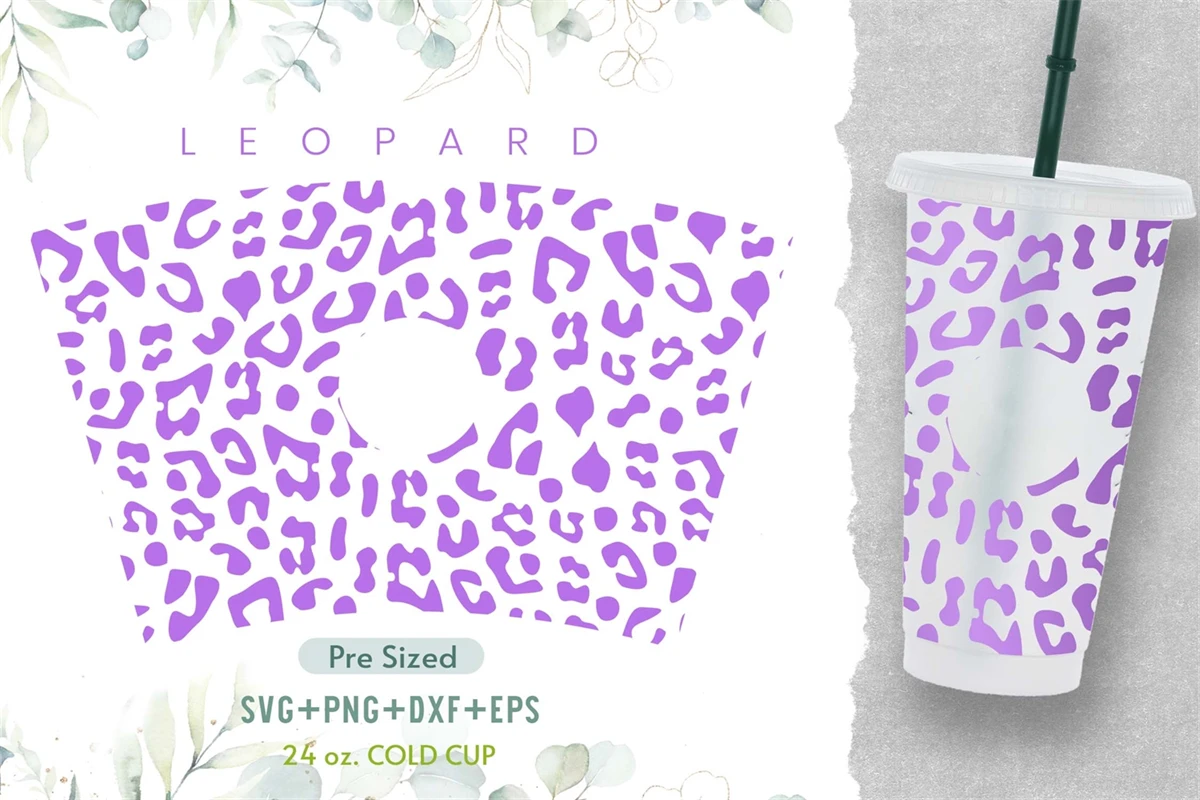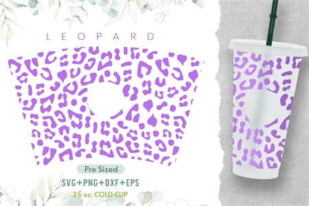 24oz Leopard Starbucks Cold Cup Svg, Leopard Pattern Cup Svg