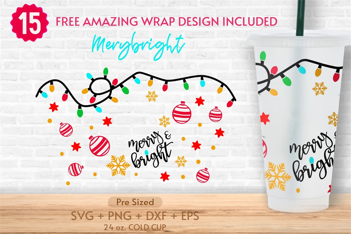 24oz Merry and Bright Starbucks Cold Cup Svg, Christmas Svg