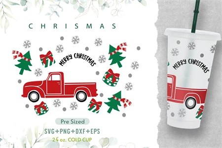 24oz Merry Christmas Starbucks Cold Cup Svg, Venti Full Wrap