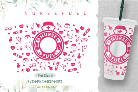 24oz Nurse Fuel Starbucks Cold Cup Svg,Venti Full Wrap Svg