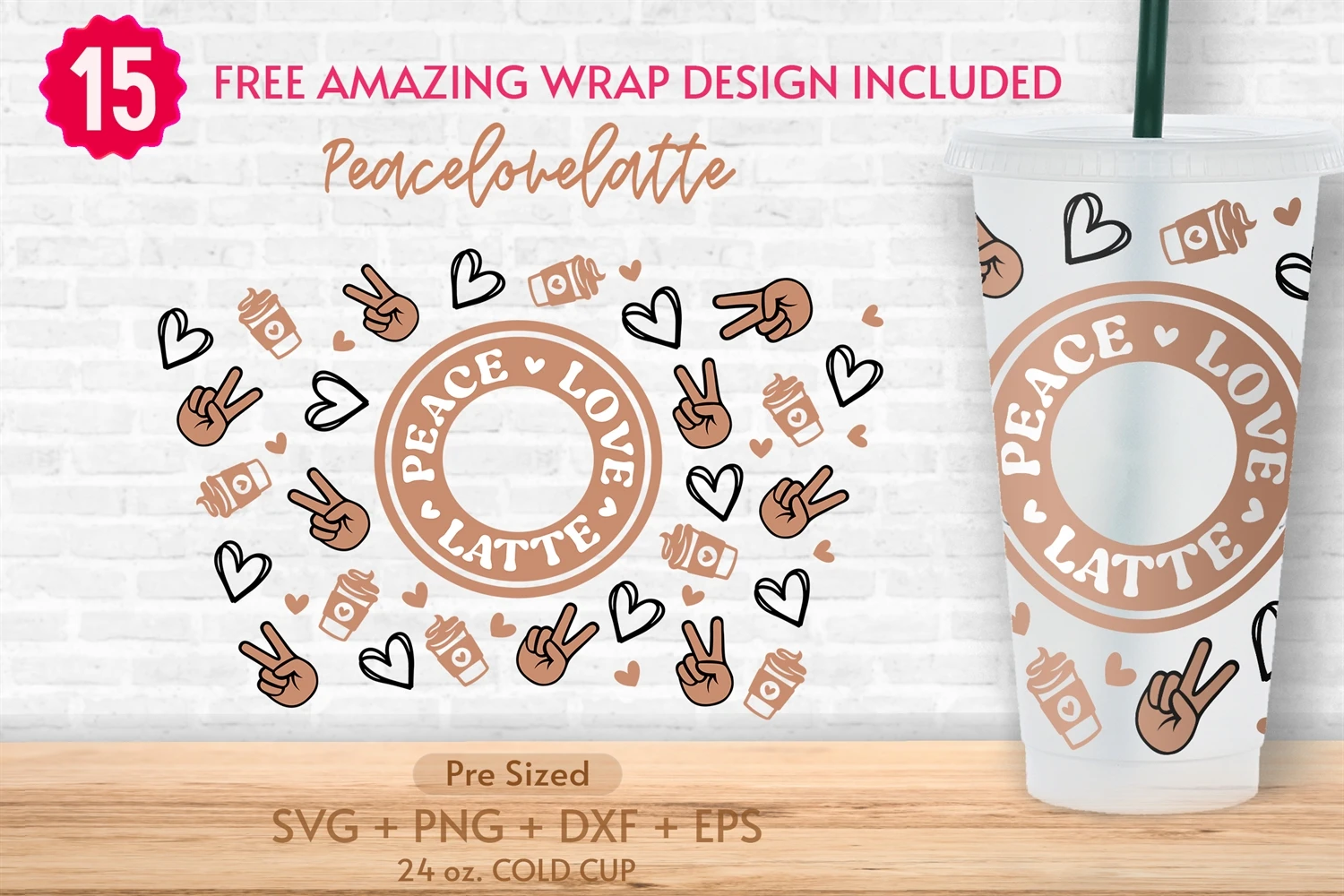 24oz Peace Love Latte Starbucks Cold Cup Svg, Love Peace Cup
