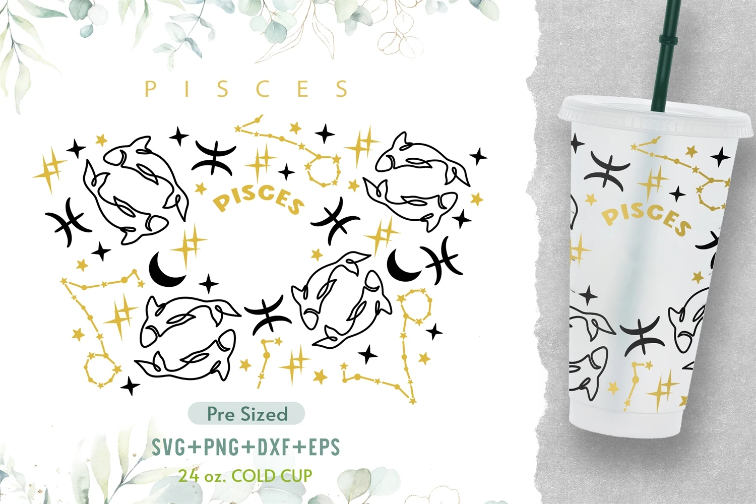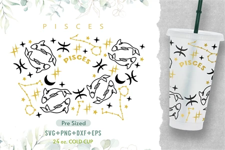 24oz Pisces Starbucks Cold Cup Svg, Twins Zodiac Star Sign